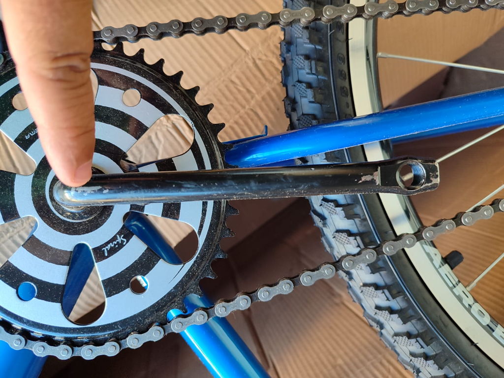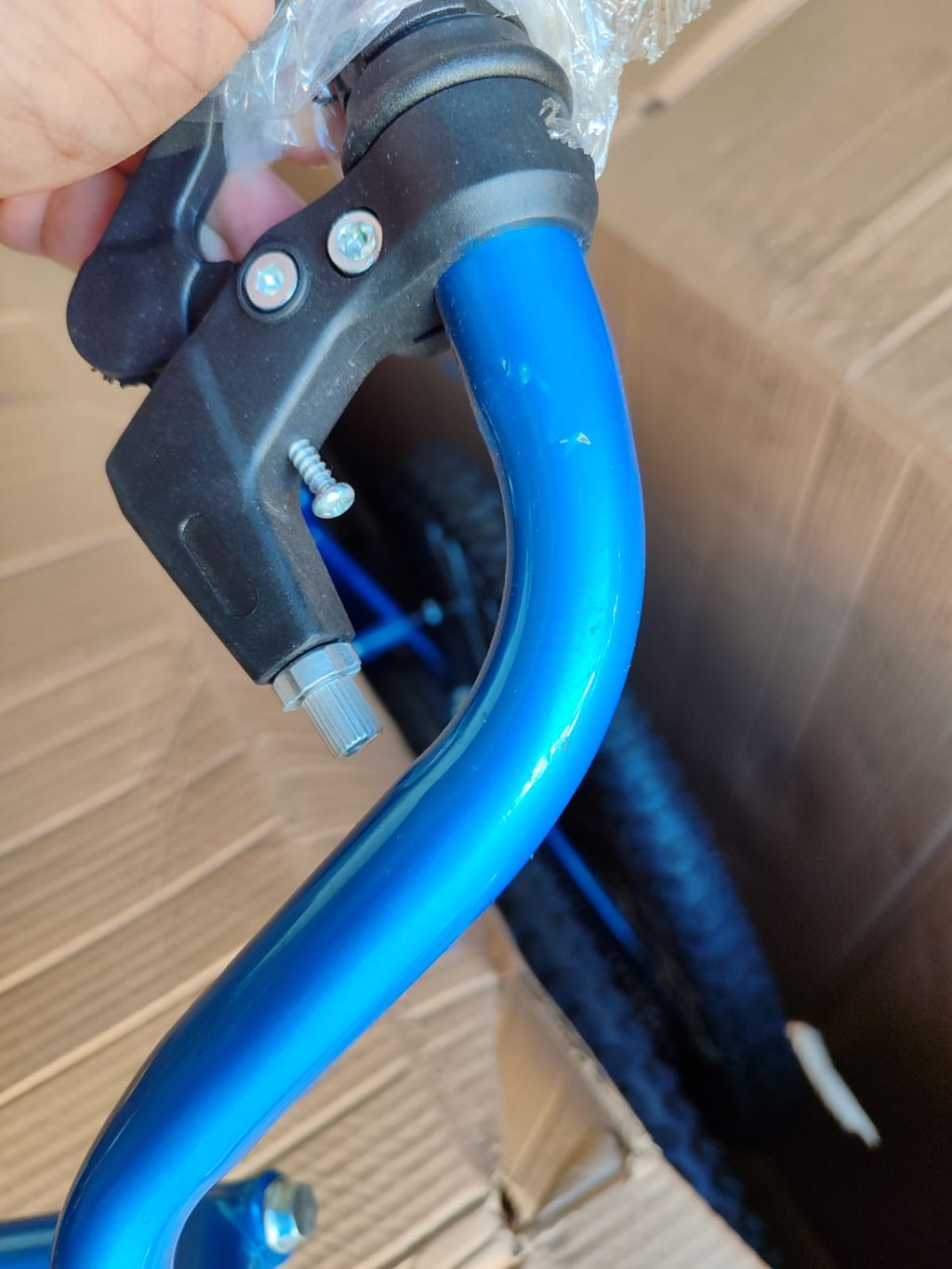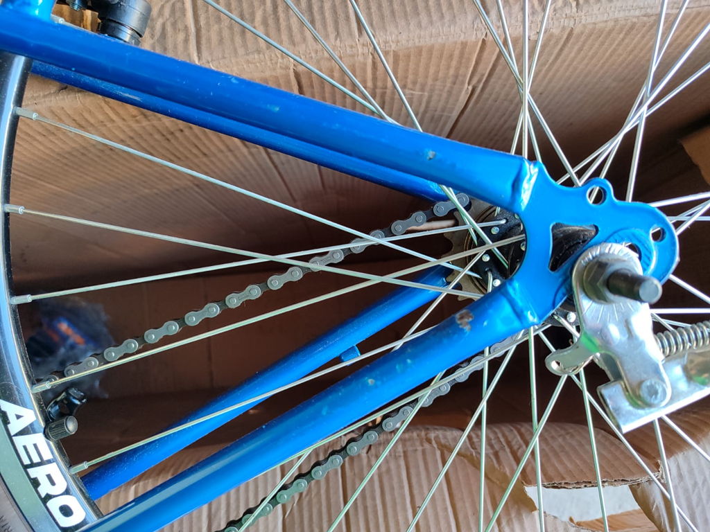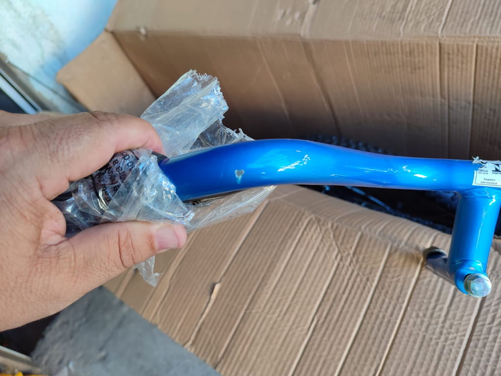 Bicicleta frágil, pintira descascando e ainda veio sem freio.