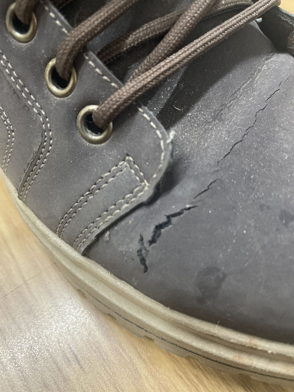 Poucos dias após uso moderado e alternado com outro calçado, o material que imita camurça , ressecou e partiu nas dobras.