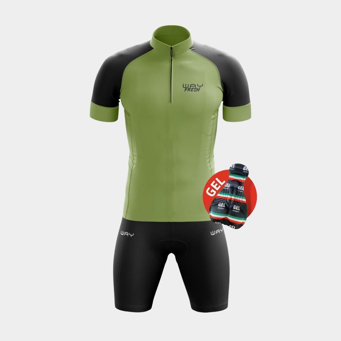 - Nome: Conjunto de Ciclismo Masculino Camisa Verde Militar Way Fresh Bolso Traseiro Bermuda Gel