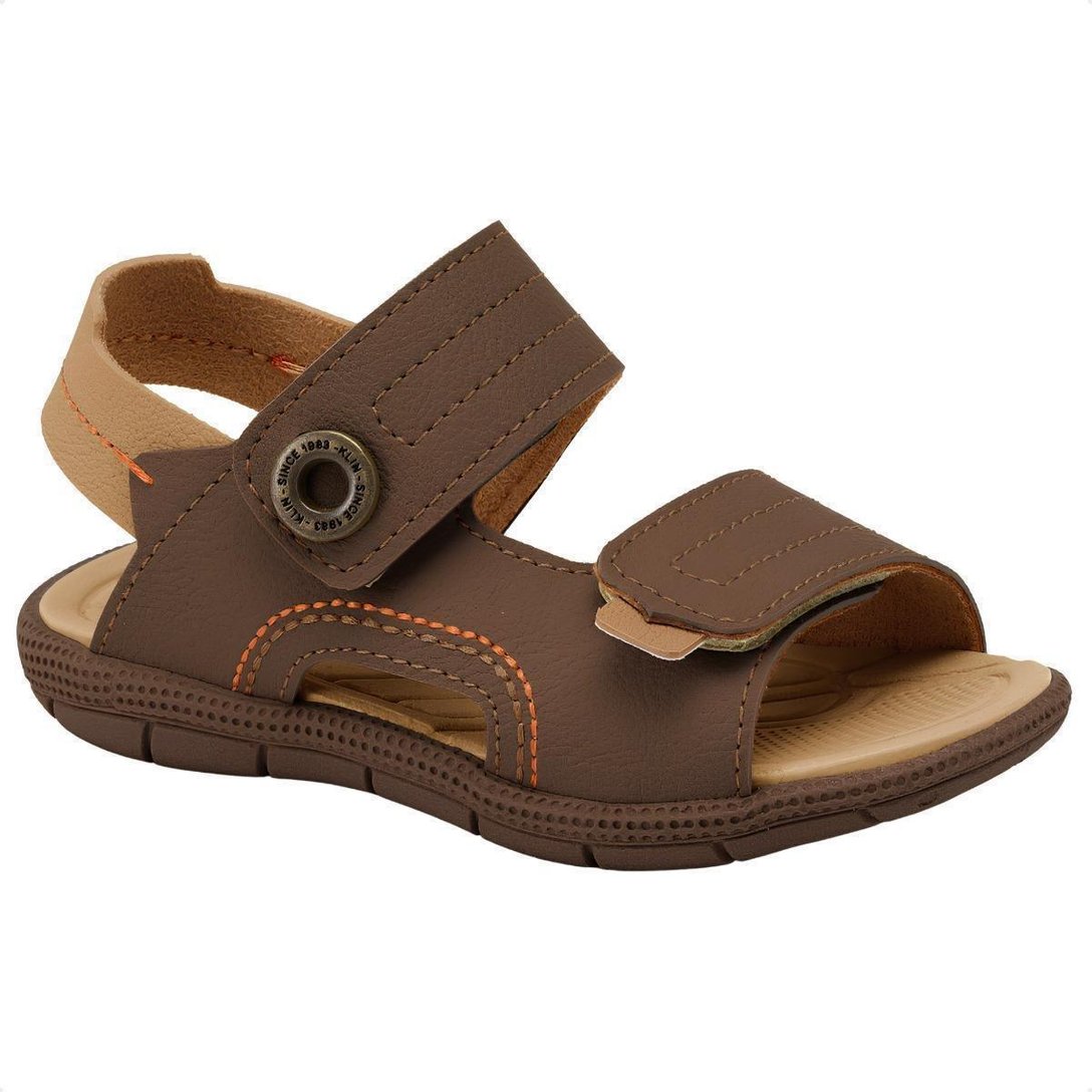 Papete Sandália Baby Klin Tic Tac Casual Anatômica Básica Tiras Autocolantes Confortável - Marrom