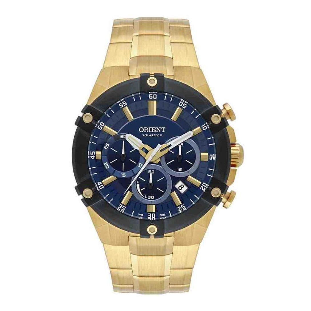 Seja bem-vindo à Elister! Aqui, priorizamos a qualidade através de produtos 100% originais, com garantia contra defeitos de fabricação e nota fiscal. Estamos há mais de 50 anos no mercado oferecendo uma ampla variedade de acessórios, incluindo relógios e óculos de sol, com as melhores marcas e estilos. Além disso, a nossa equipe é treinada para oferecer um atendimento excepcional, garantindo que cada cliente seja tratado com o respeito e a atenção que merece. Realizando a compra, não deixe de nos avaliar! Sua opinião é muito importante para aperfeiçoar cada vez mais o nosso trabalho. Esse produto é original e acompanha: Embalagem original; Manual de instruções; Garantia do fornecedor; Nota fiscal simplificada, que vai colada junto à etiqueta. ESPECIFICAÇÕES TÉCNICAS - Marca: Orient - Linha: Neo Sport - Referência: MGSSC064 D1KX - Gênero: Masculino - Tipo de mostrador: Analógico - Tipo de movimento: Solar - Funções: Calendário simples(dia do mês); Indicador 24h; Cronógrafo - Tipo de fecho: Dobrável - Cor da caixa: Dourado - Cor do mostrador: Azul - Cor da pulseira: Dourado - Material da caixa: Aço - Material da pulseira: Aço - Largura da caixa: 4,5cm - Resistência à água: 5 ATM (50m) - Garantia: 15 meses